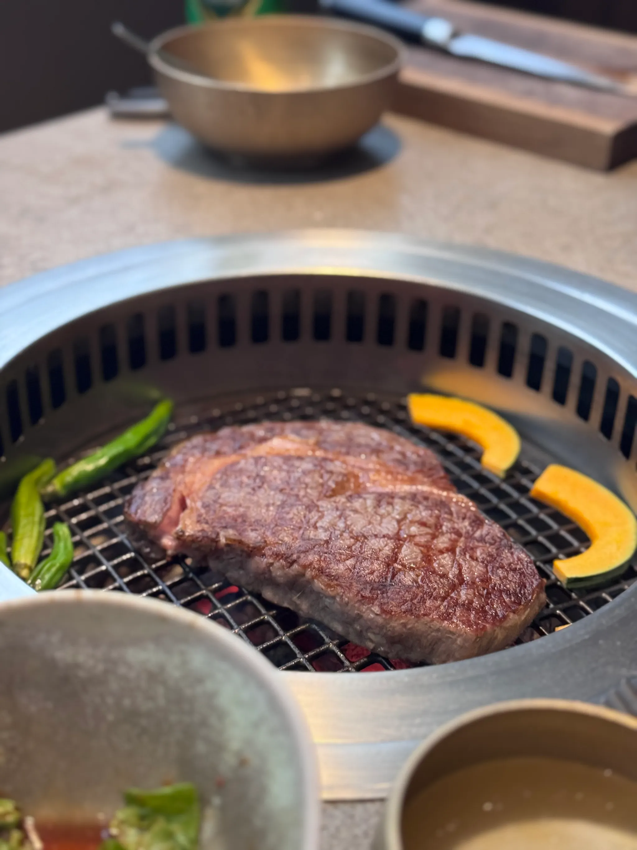 육회랑 오징어 먹는 동안 고기를 구워주시는데요~
